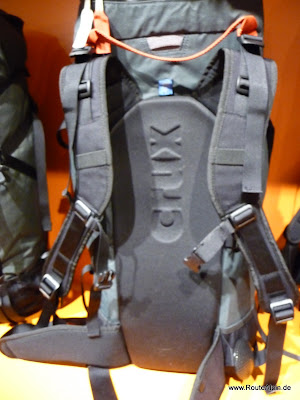 These two packs were designed by Carol McDermott, a New Zealand climber now in Europe, and must be seen as alpine climbing packs for Europe, not as mainstream. Der Rucksack besitzt seitliche Kompressionsriemen , die neben der komprimierenden Wirkung auch als Halter für Skier, Gestänge oder andere Ausrüstungsgegenstände fungieren können.