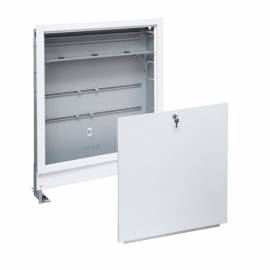 Der Anschluss ist von rechts oder von links möglich. Tür und Rahmen sind außerdem separat verpackt und auf Kundenwunsch zeitversetzt zur Endmontage lieferbar. Abnehmbarer Blendrahmen mit abschließbarer Tür. Kompakte Ausführung für Unterputzmontage, z. Rückwand mit senkrechten, frei verstellbaren Befestigungsschienen für beliebige Ausrichtung des.