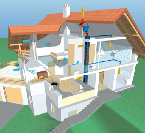 Es werden zwei verschiedene Systeme unterschieden: Abluftanlage. Die bekannteste Form ist eine einfache Abluftanlage, wie Sie gerne in Bädern oder Küchen installiert wird. Dabei sorgt ein Ventilator über einen Abluftkanal für den Abtransport der feuchten oder geruchsbelasteten Luft. Niedriger Energieverbrauch - hohe Wärmerückgewinnung Das dezentrale Gerät mit Wärmetauscher befindet sich im Raum nahe der Außenwand.