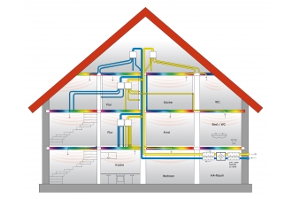 In den einzelnen Zimmern werden Abluftklappen installiert, die luftdicht abgeschlossen werden können und schallgedämmt sind. Zentrale Anlagen sind aufwändiger, denn die Lüftungskanäle müssen von den Wohnräumen zur Anlage geführt werden: Bei der einfacheren Variante werden Schlaf- und Wohnräume an die Zuluftkanäle, Küche, Bad und WC an die Abluftkanäle angeschlossen.